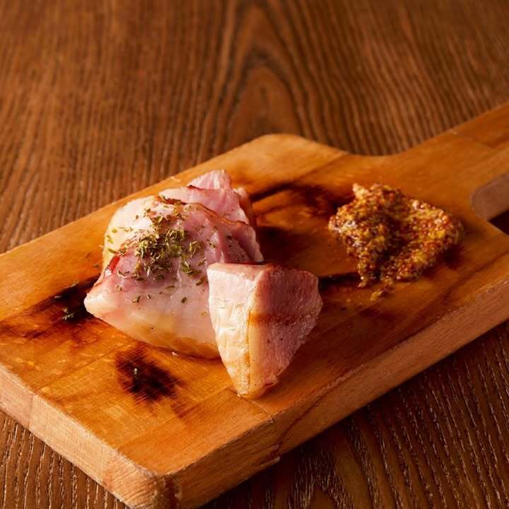 肉厚なベーコンに、お好みで粒マスタードをつけてお召し上がりください!