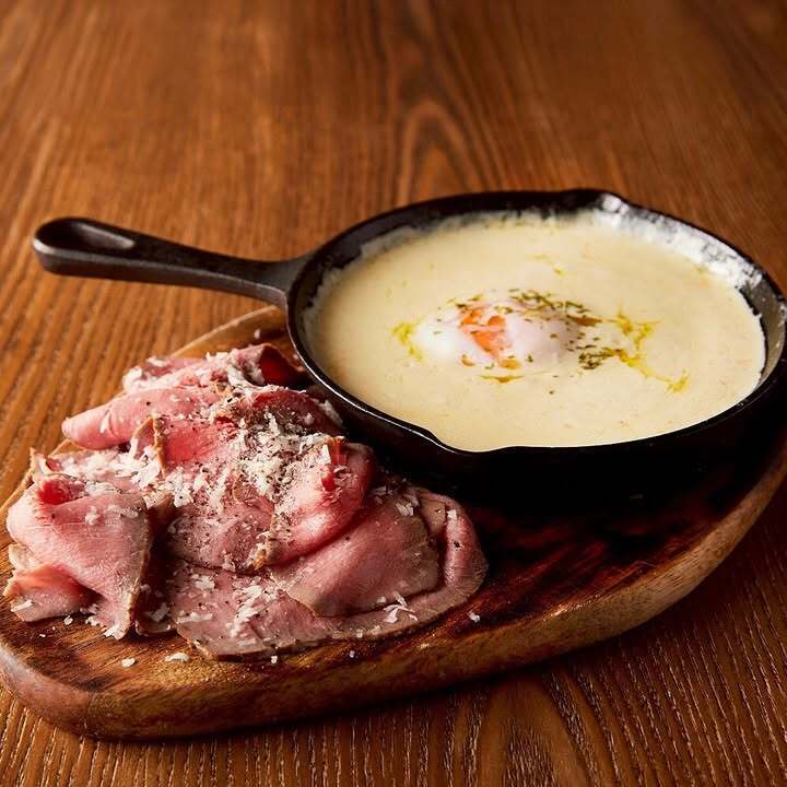 以前までは、お皿でのご提供でしたが、チーズソースをずっと温かいままでお召し上がりいただけるように、熱々の鉄板をお客様のもとにお届けするという形に、リニューアルいたしました🔥