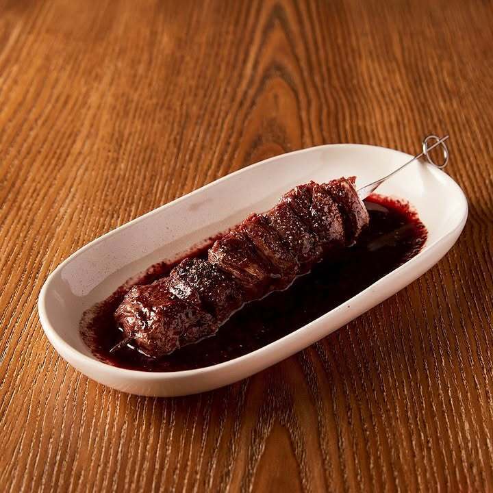 赤ワインベースのソースをお好みでつけてお召し上がりいただきます。少しでも長く温かさを保っていられるように「鉄串」を使用しています❤️🔥他の串料理と一緒にご注文いただき、ぜひシェアをして、ご賞味ください。(一本ずつのご注文です)